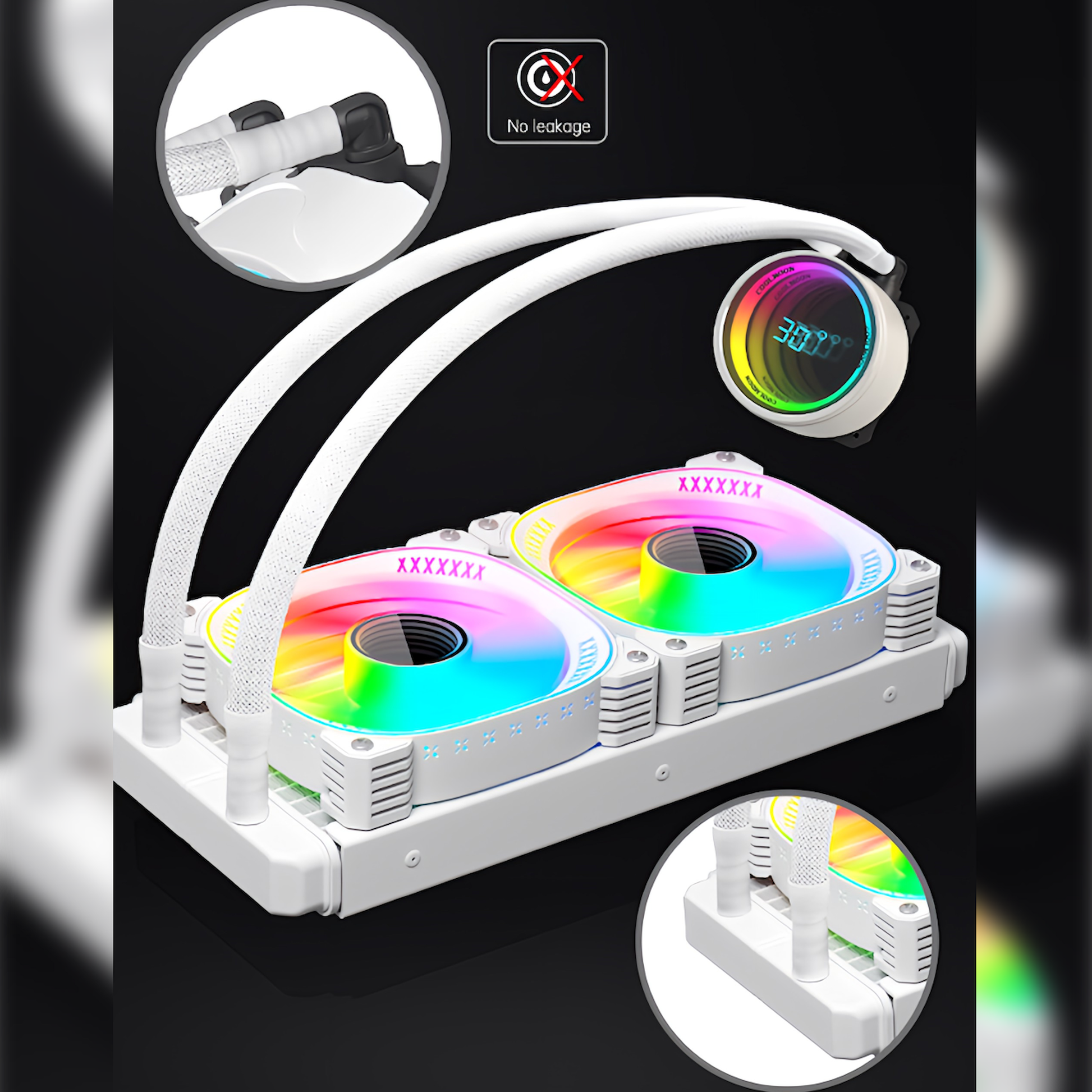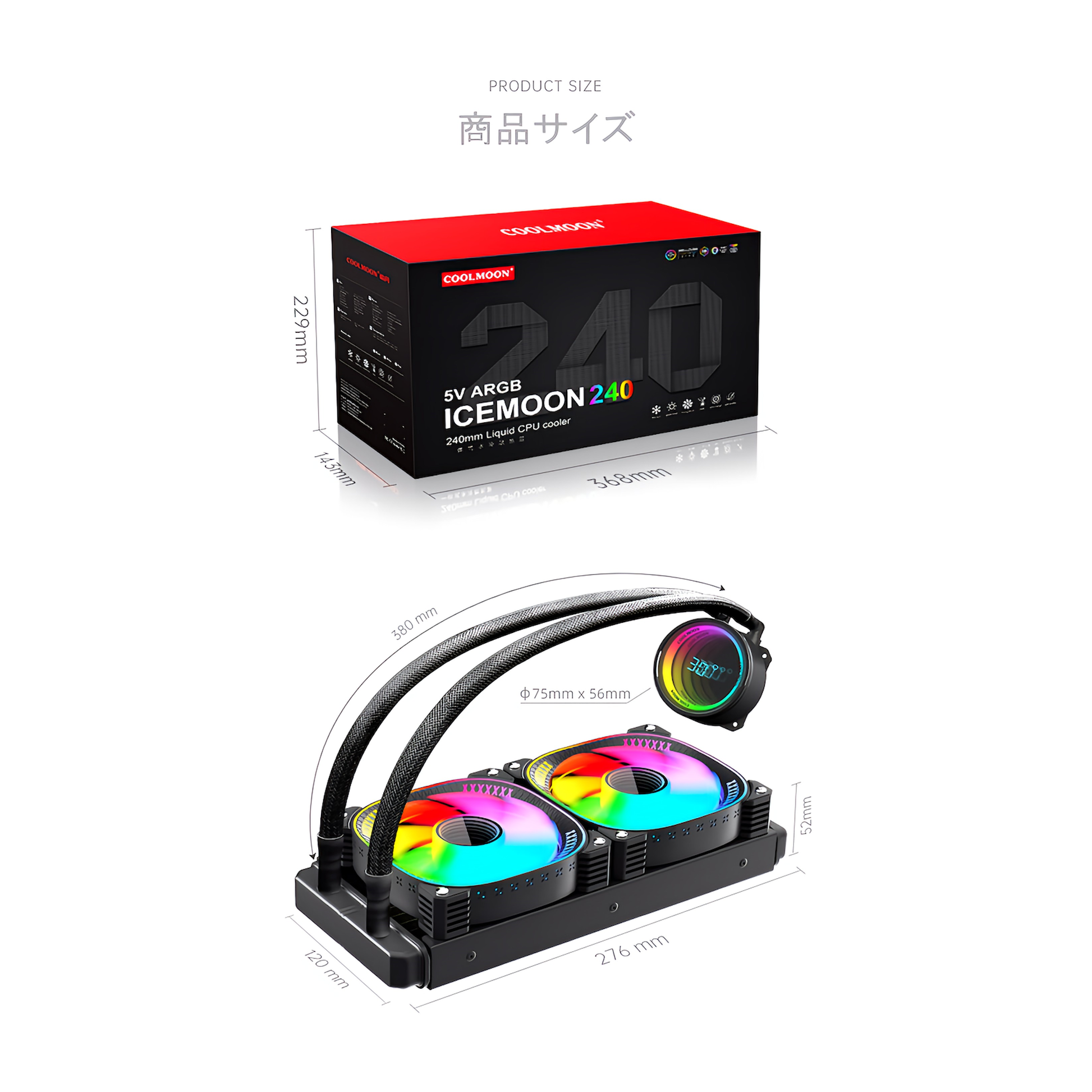 COOLMOON 簡易水冷クーラー 240mm 温度表示機能付き インフィニティ―ミラー CPUクーラー LED ARGB 5v 3pin LGA1700/1200/115X AMD:AM4ソケットに対応 4pin PWM ファン制御(ホワイト)
