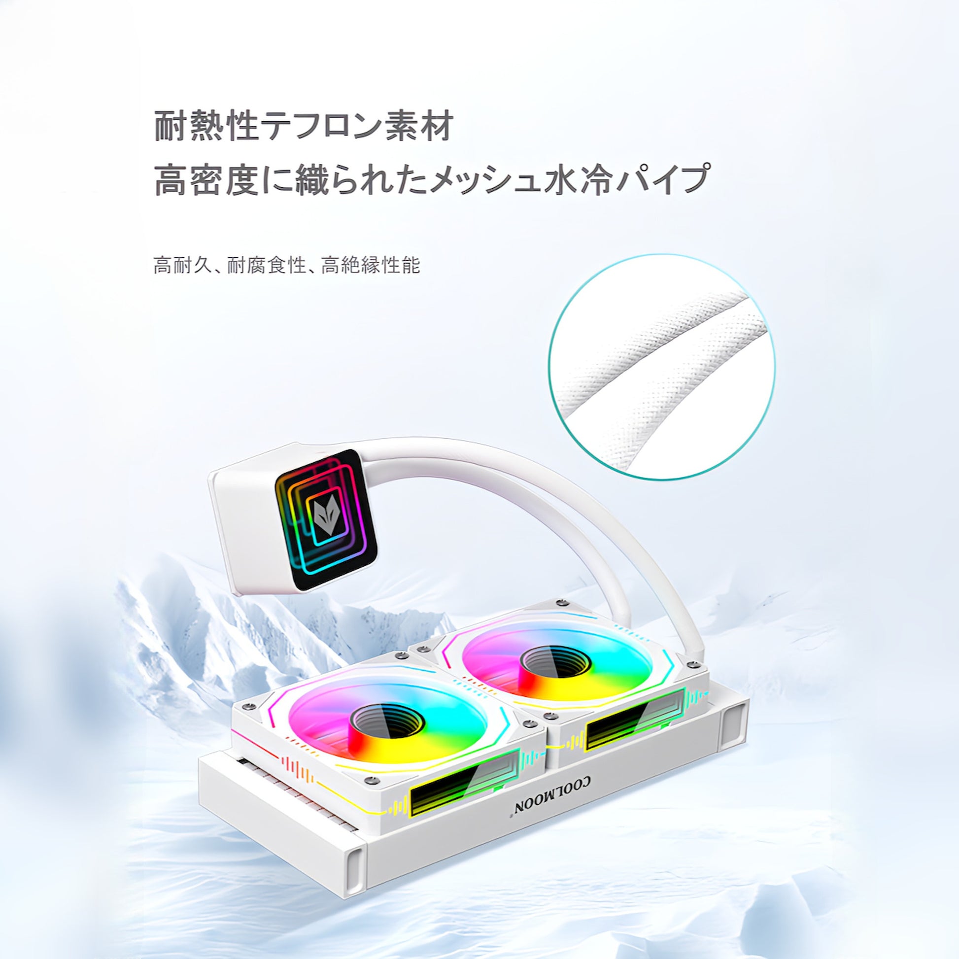 COOLMOON AOSOR 簡易水冷クーラー 240mm インフィニティ―ミラー CPUクーラー LED ARGB 5v 3pin LGA1700/1200/115X AMD:AM5/AM4ソケットに対応 4pin PWM ファン制御