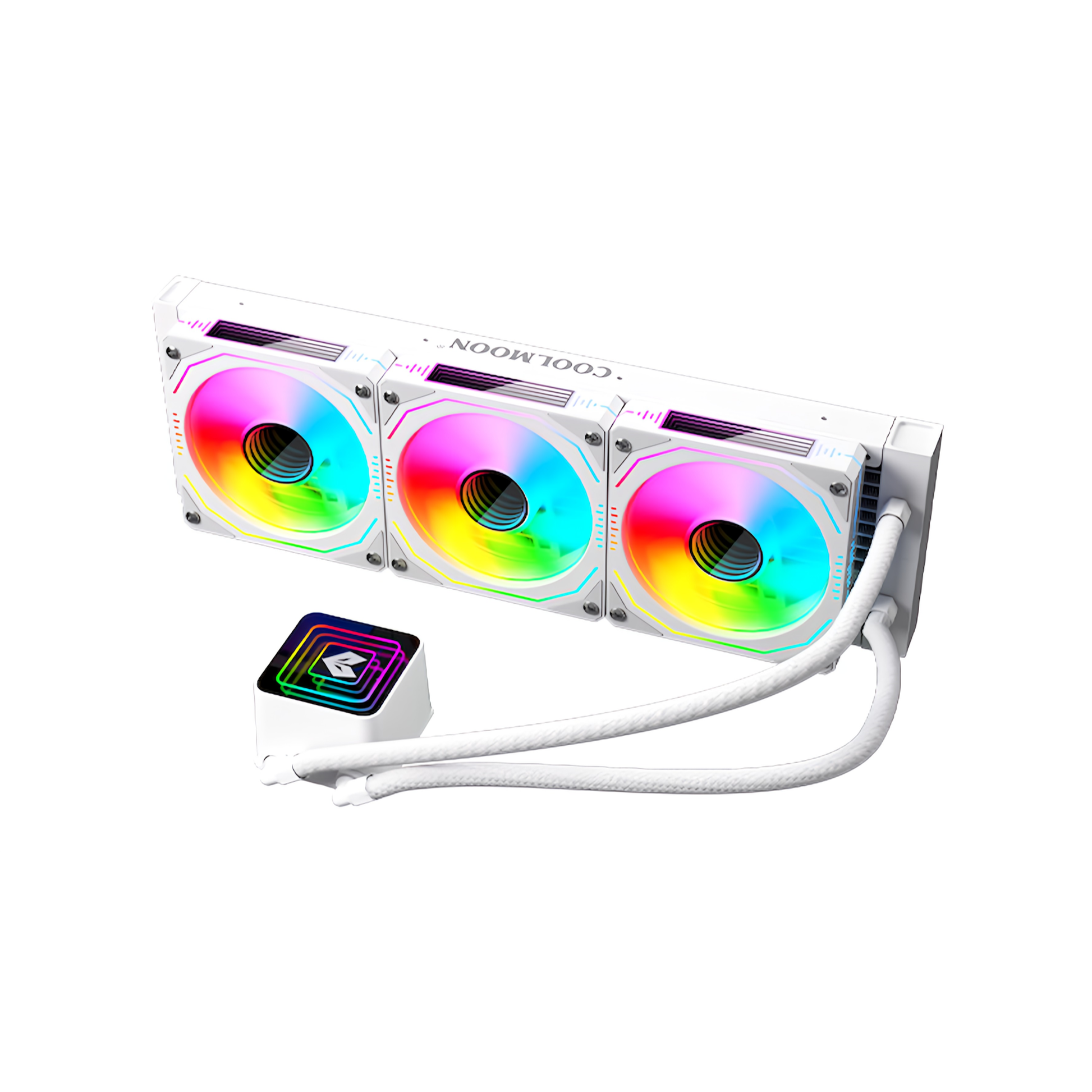 COOLMOON AOSOR 簡易水冷クーラー 360mm インフィニティ―ミラー CPUクーラー LED ARGB 5v 3pin LGA1700/1200/115X AMD:AM5/AM4ソケットに対応 4pin PWM ファン制御(ホワイト)