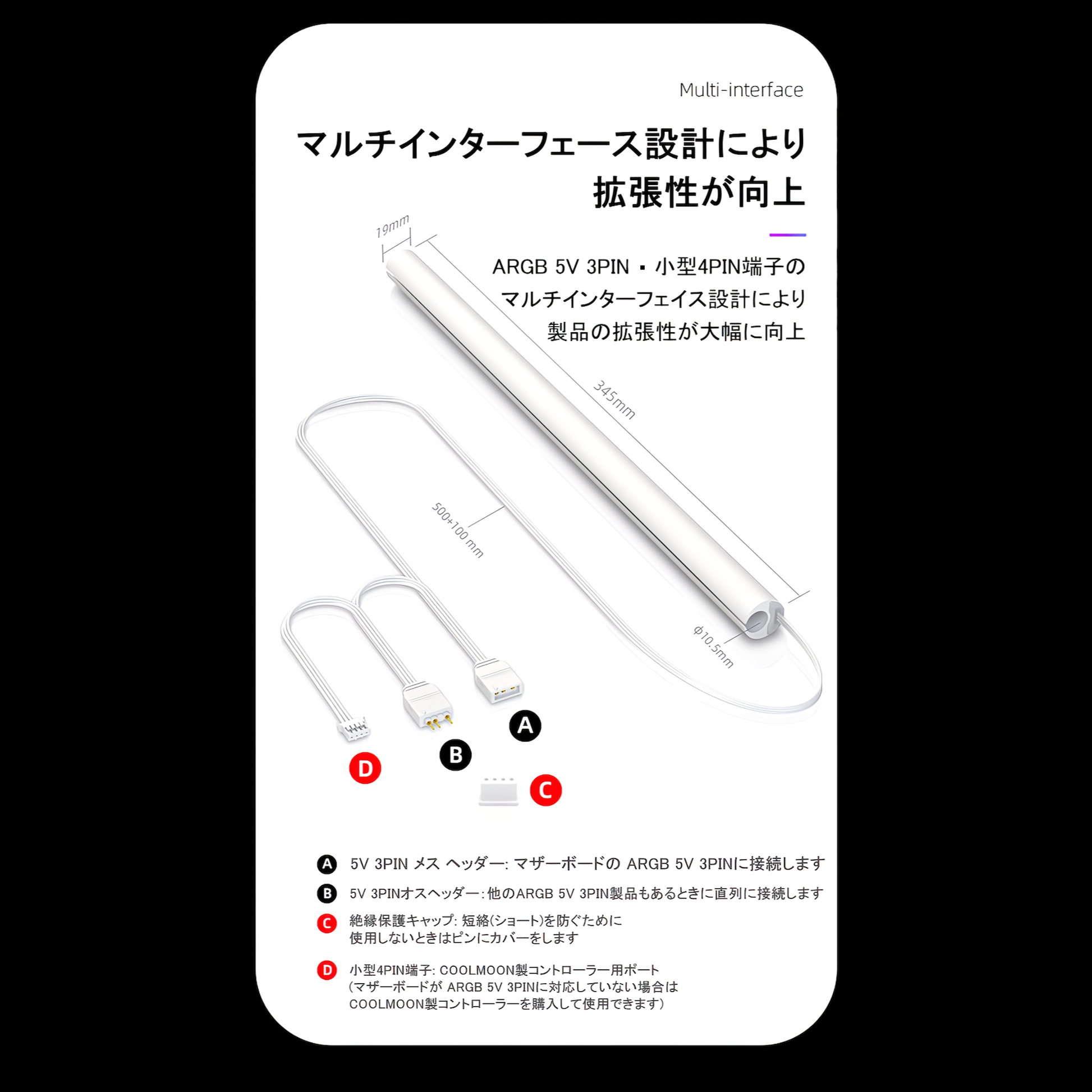 COOLMOON AOSOR 簡易水冷 CPUクーラー用 LEDホースカバー ARGB 5V 3PIN 2本セット (ST350 34.5cm)