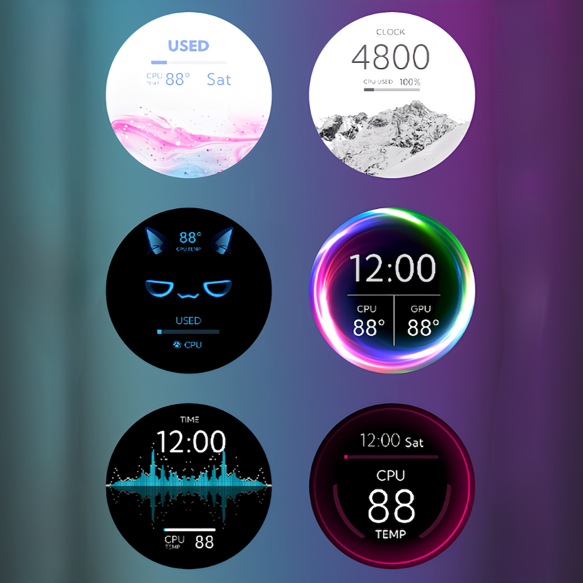 2.1インチ 水冷サブスクリーン ips円形スクリーン 内蔵スクリーン 360度回転 ウォールペーパー(ホワイト)