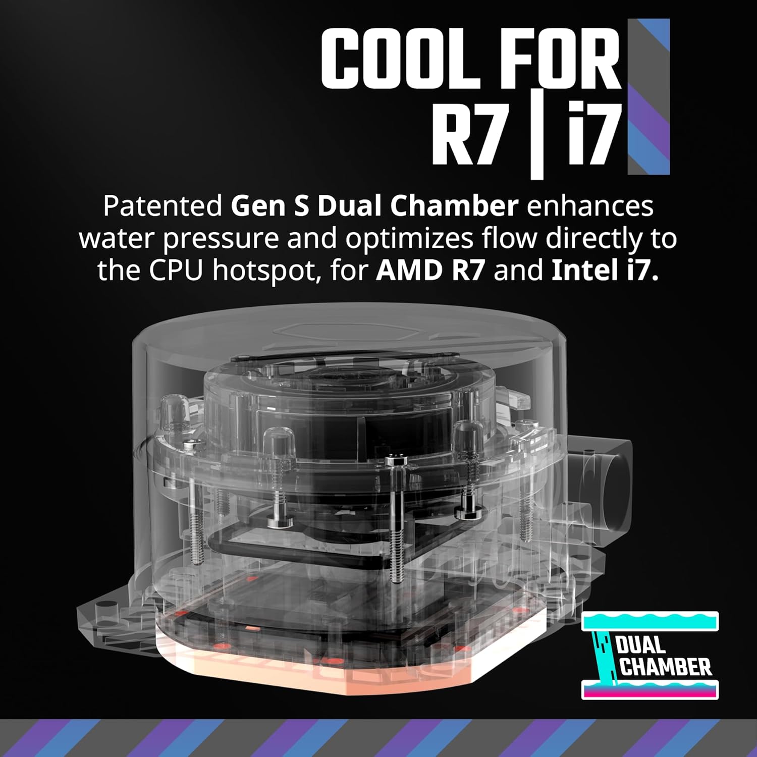 Gen Sデュアルチャンバーポンプ:改良された銅ベース設計により、ヒートスポットをより正確にターゲットにすると同時に、水流と圧力を増加させ、冷却性能を向上させます。