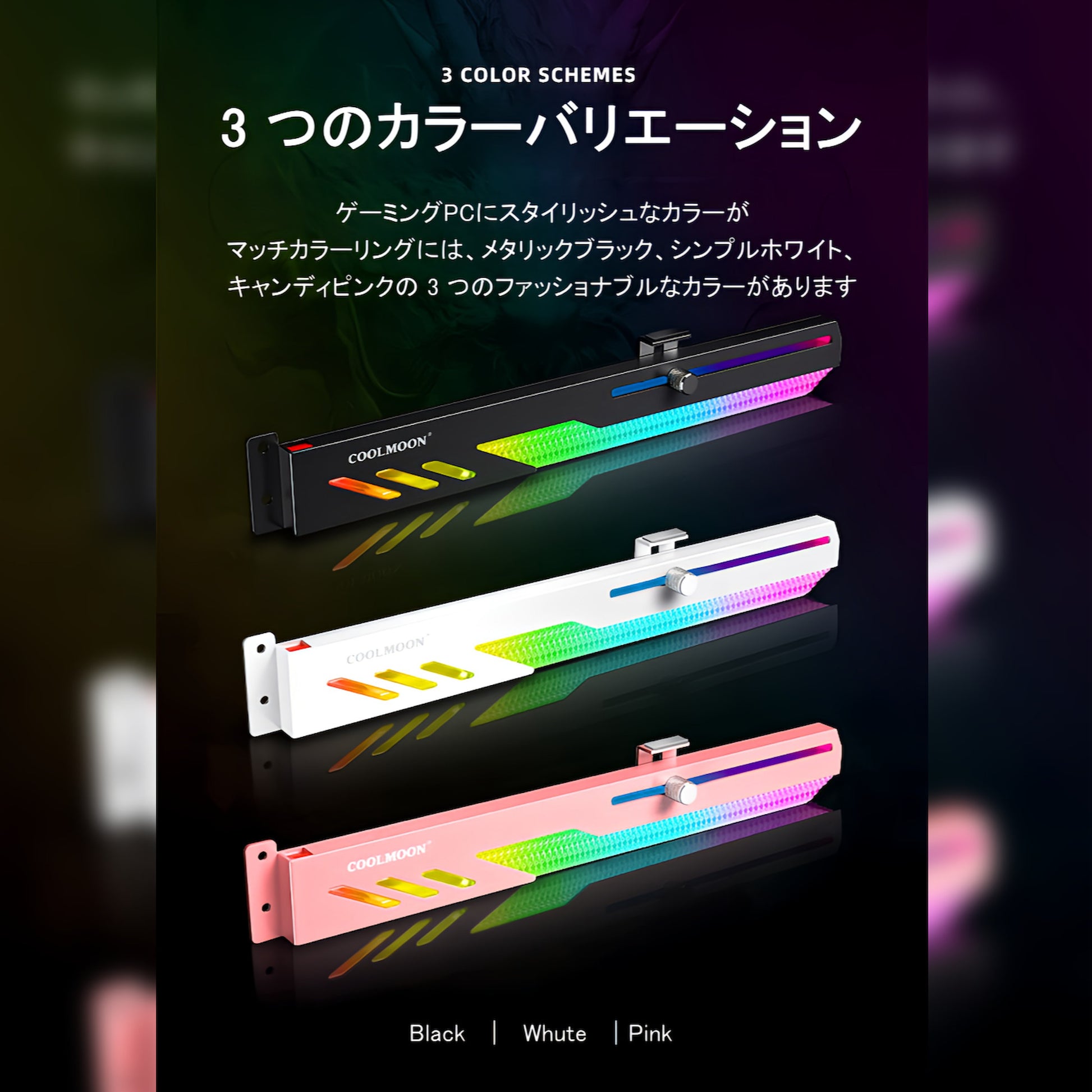 COOLMOON グラフィックボードブラケット GPU ホルダー LED ARGB 5v 3pin 28cm 支え 垂れ防止 脱落防止 (ピンク)