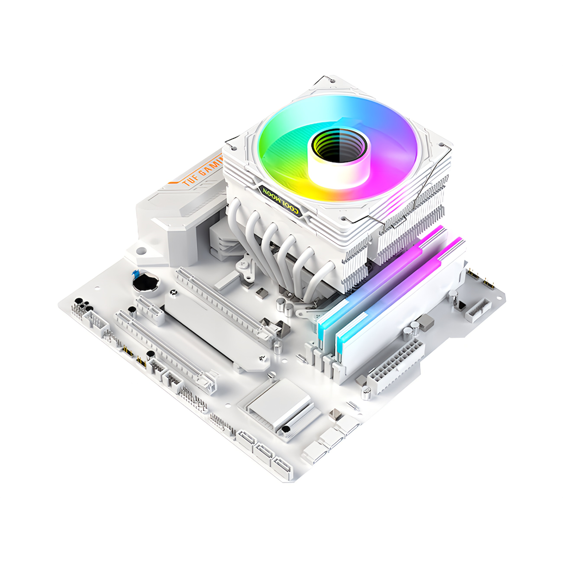 COOLMOON CPUクーラートップフロー空冷クーラー 120mm LED ARGB 5v 3pin LGA1700/1200/115X AMD:AM5/AM4ソケットに対応 4pin PWM ファン制御(ホワイト)