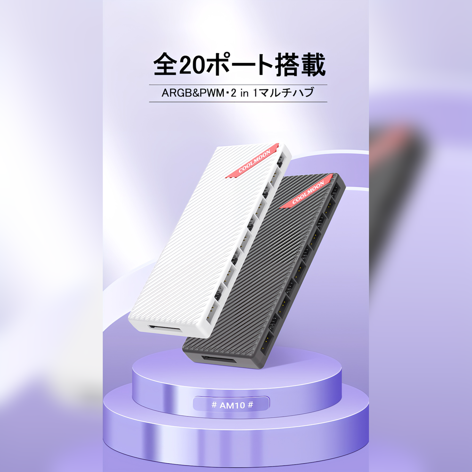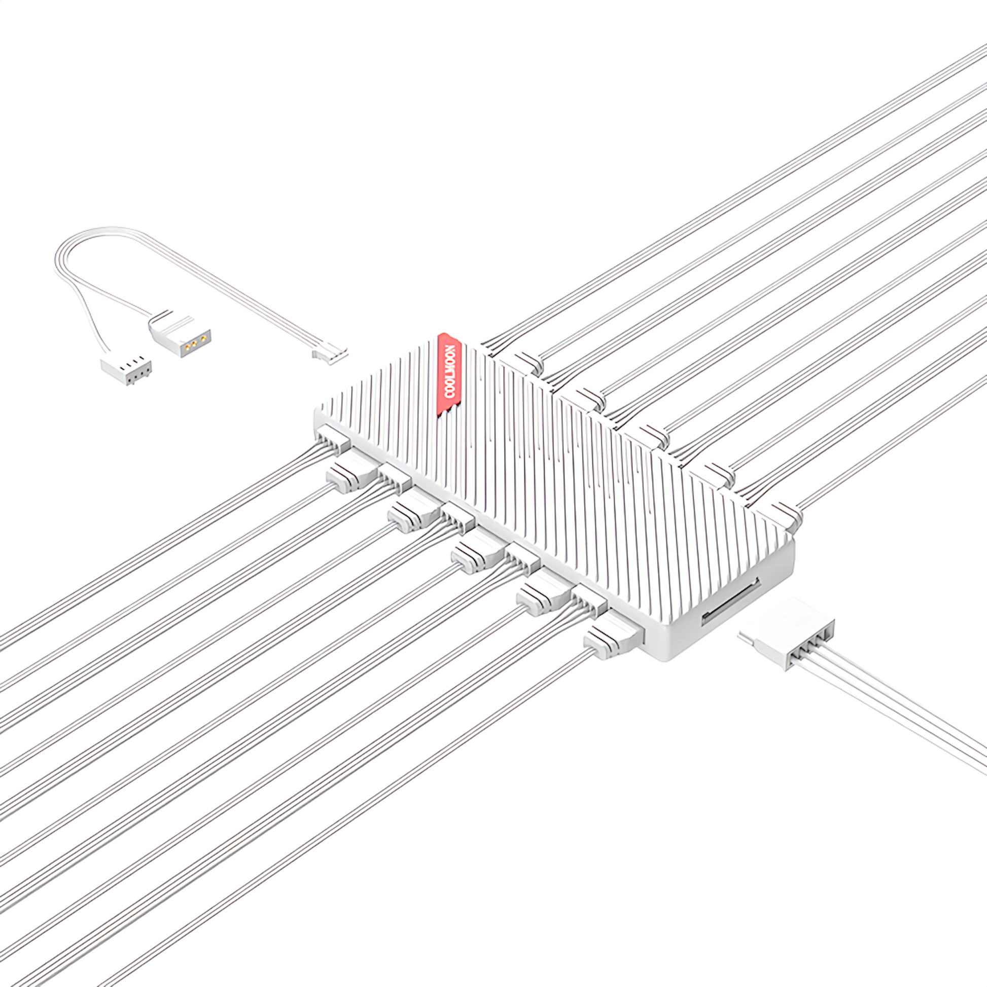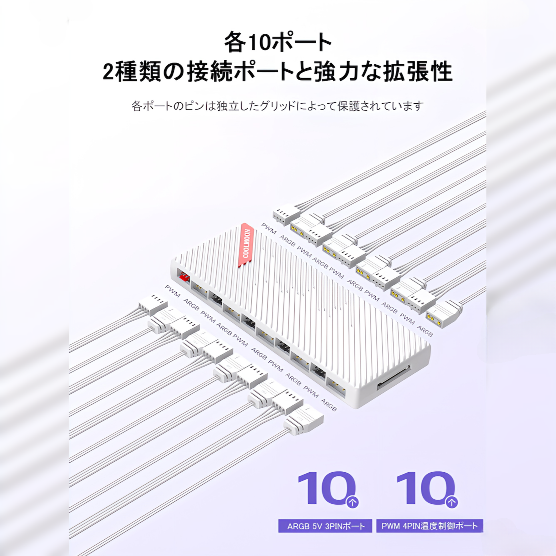 COOLMOON 20ポート ファンハブ コントローラー ARGB 5V 3PIN 10ポート/12V 4pin10ポート マザーボード制御対応 ファン回転速度制御対応(ホワイト)