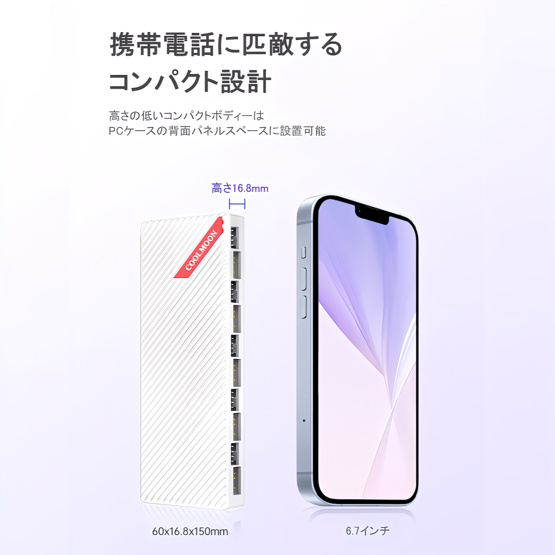 【コンパクト設計】スリムなボディで、PCケースの中に設置しやすくなっています。