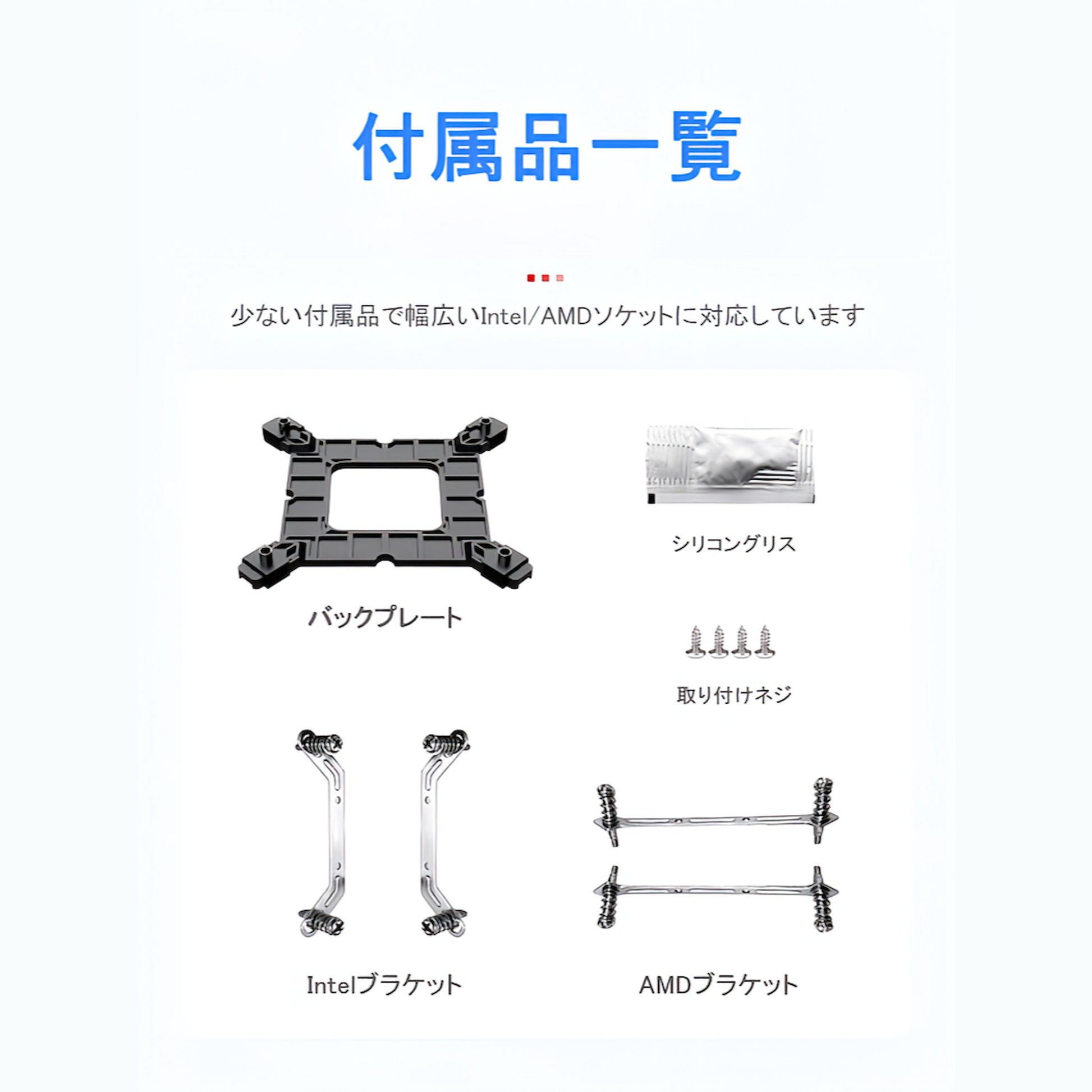 【互換性】 Intel:LGA1700/1200/115x 、AMD:AM5/AM4/AM3に対応、マザーボードのPWM 4pinに対応