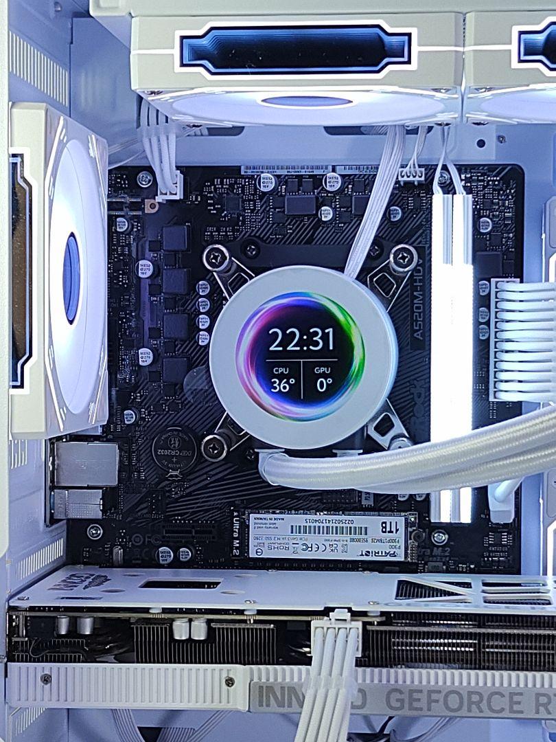 【CPUクーラー】LED簡易水冷240mm白(画像設定可能液晶付き)