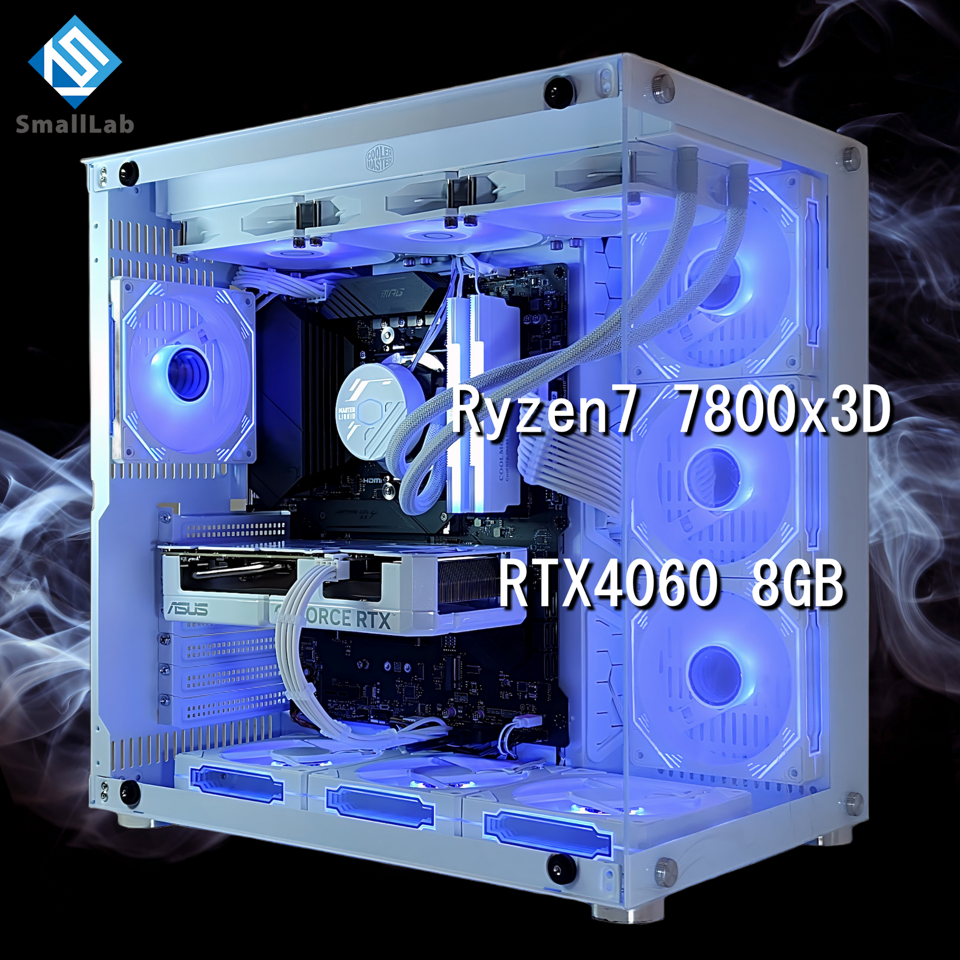 AMD Ryzen7 7800x3D / RTX4060 8GB ガラス2面ATX ゲーミングPC 簡易水冷 360mm ホワイト 白