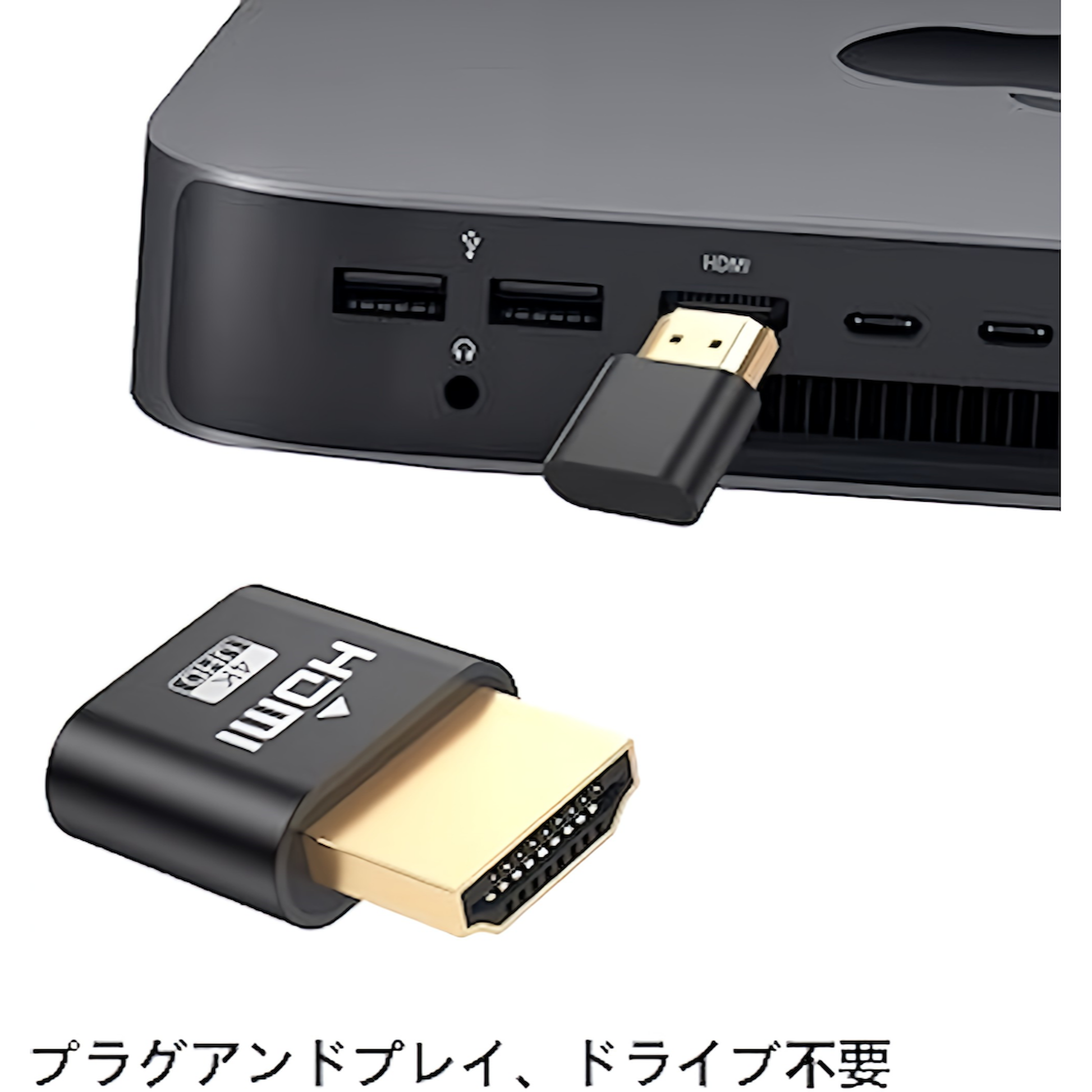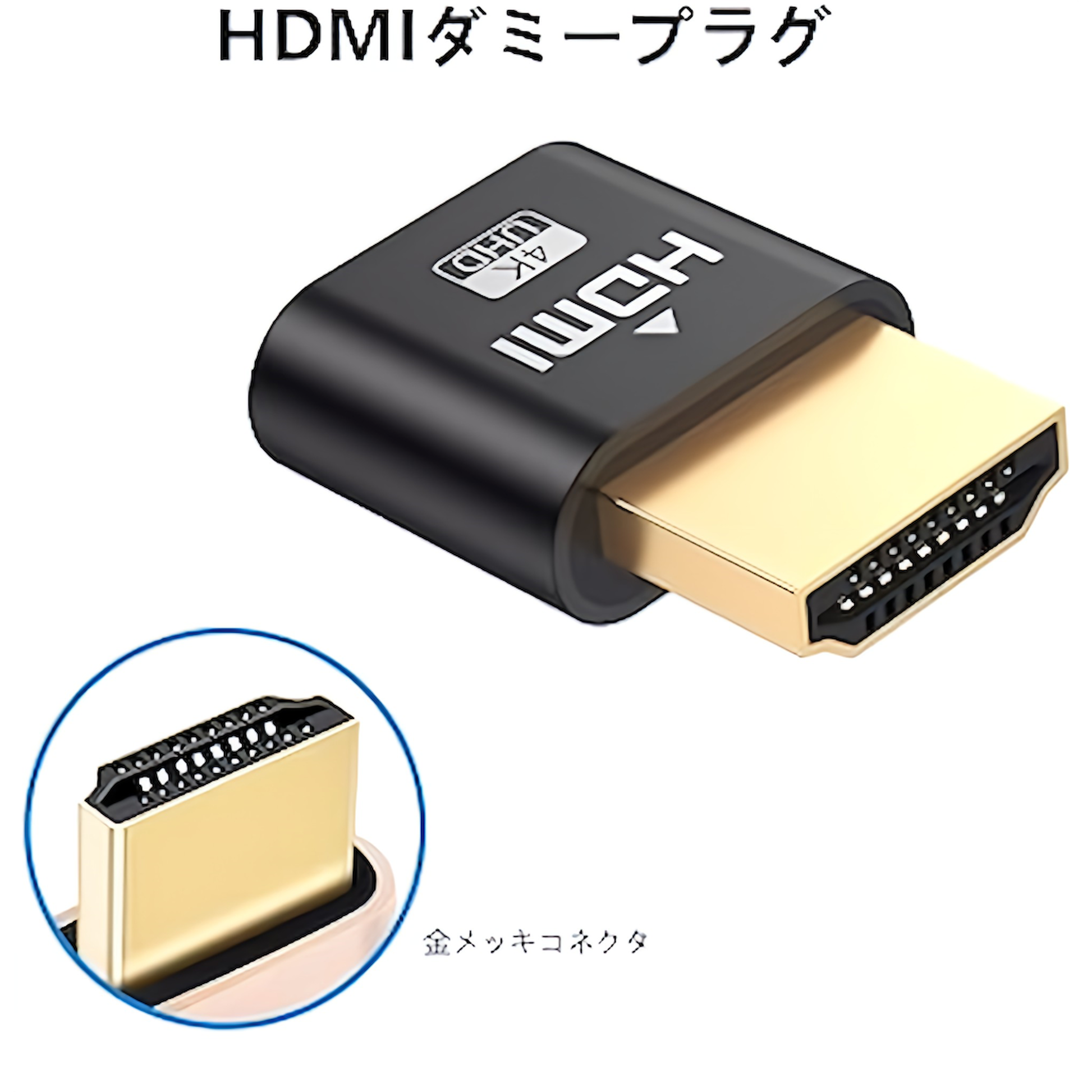 HDMI ダミープラグアダプター4K@60Hz 仮想 バーチャル ヘッドレス ゴースト シュミレーション エミュレーター VR用途 リモート用途 ブラック 黒 (HDMI)