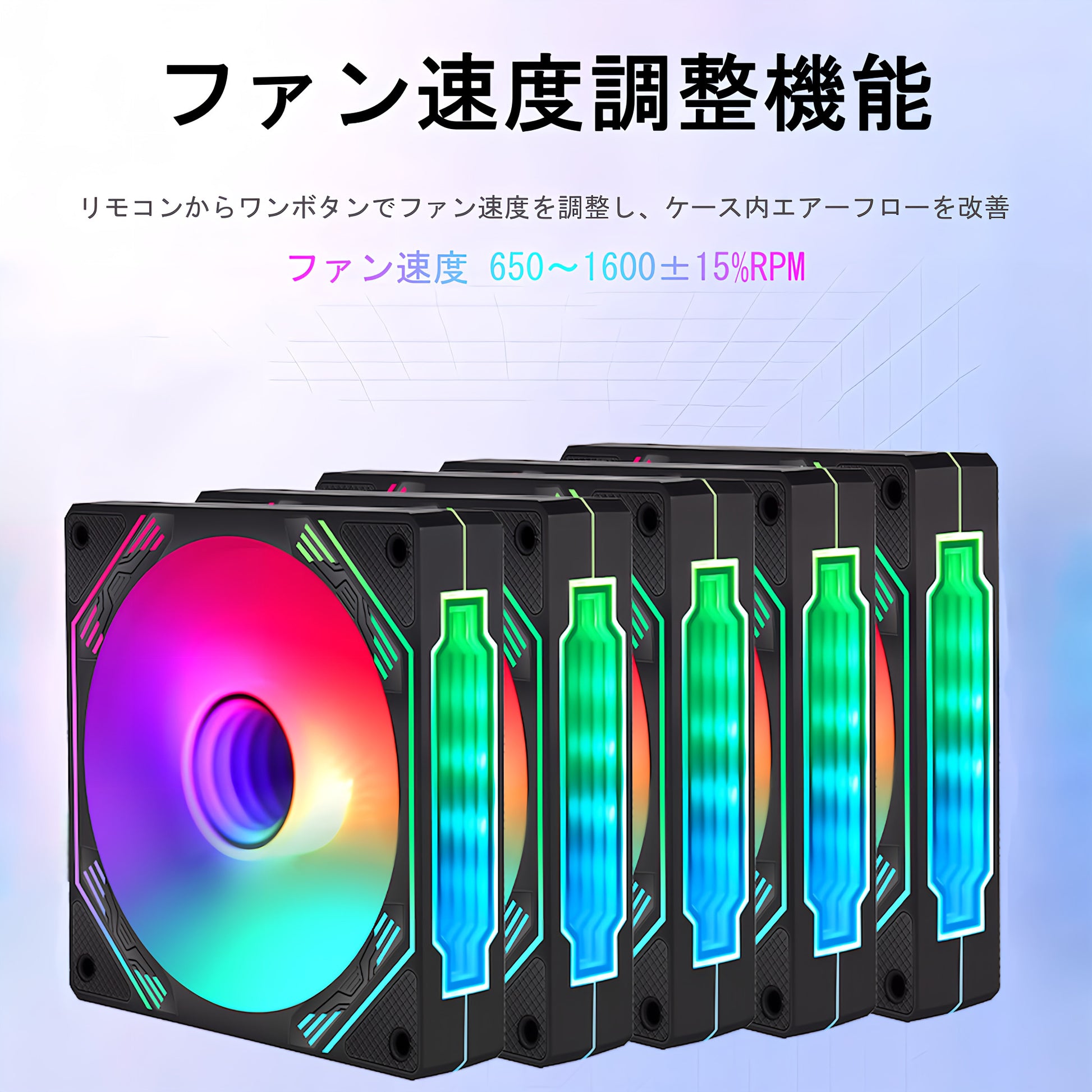 【特徴】PCのエアーフローを改善し冷却することができます。LED搭載でゲーミングPCを彩ることができます。リモコンからボタン一つで色の変更が可能です。