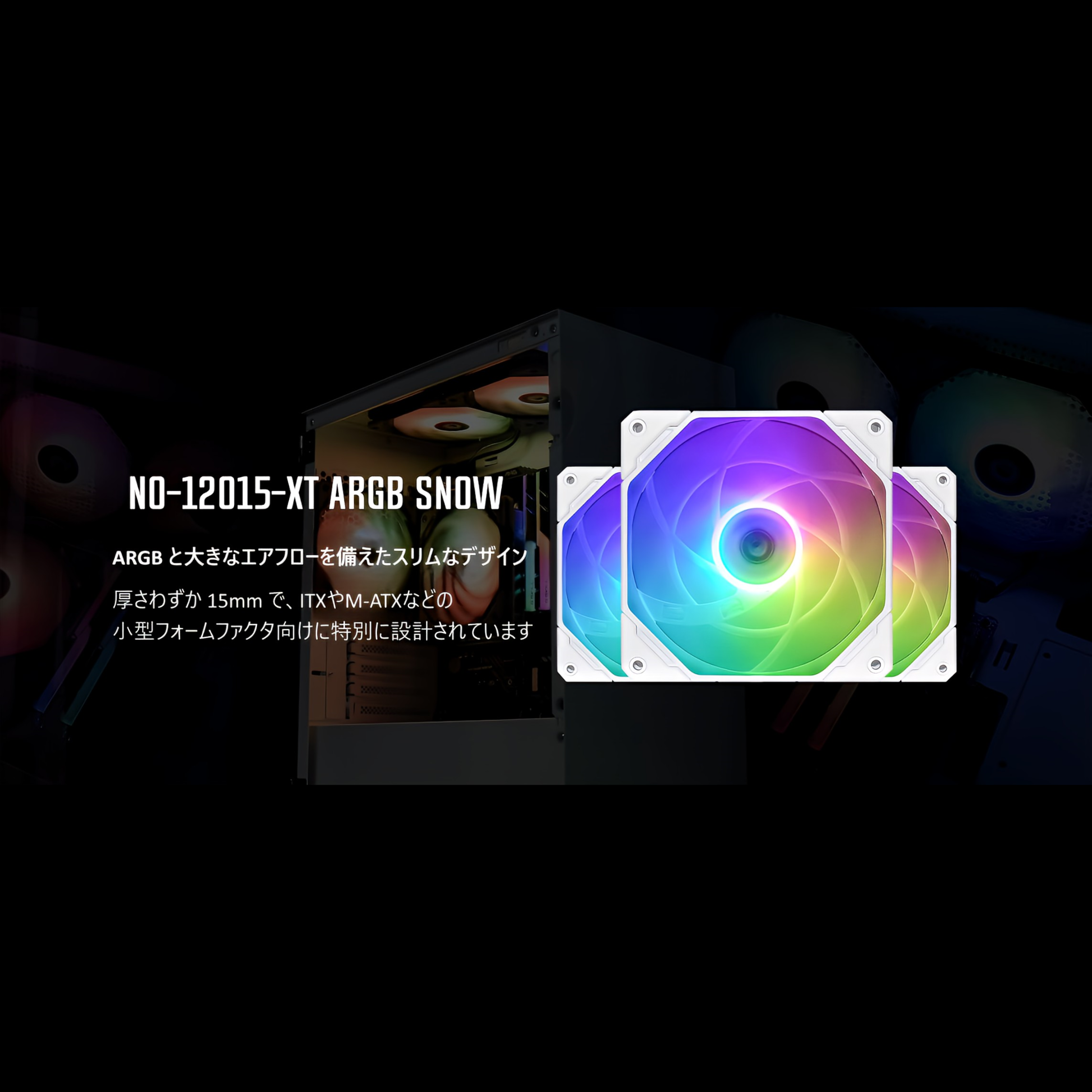ID-COOLING CPUファン NO-12015-XT-ARGB 15mm厚 ARGB 5v 3pin 500-2000RPM PWM LED発光 (ホワイト)