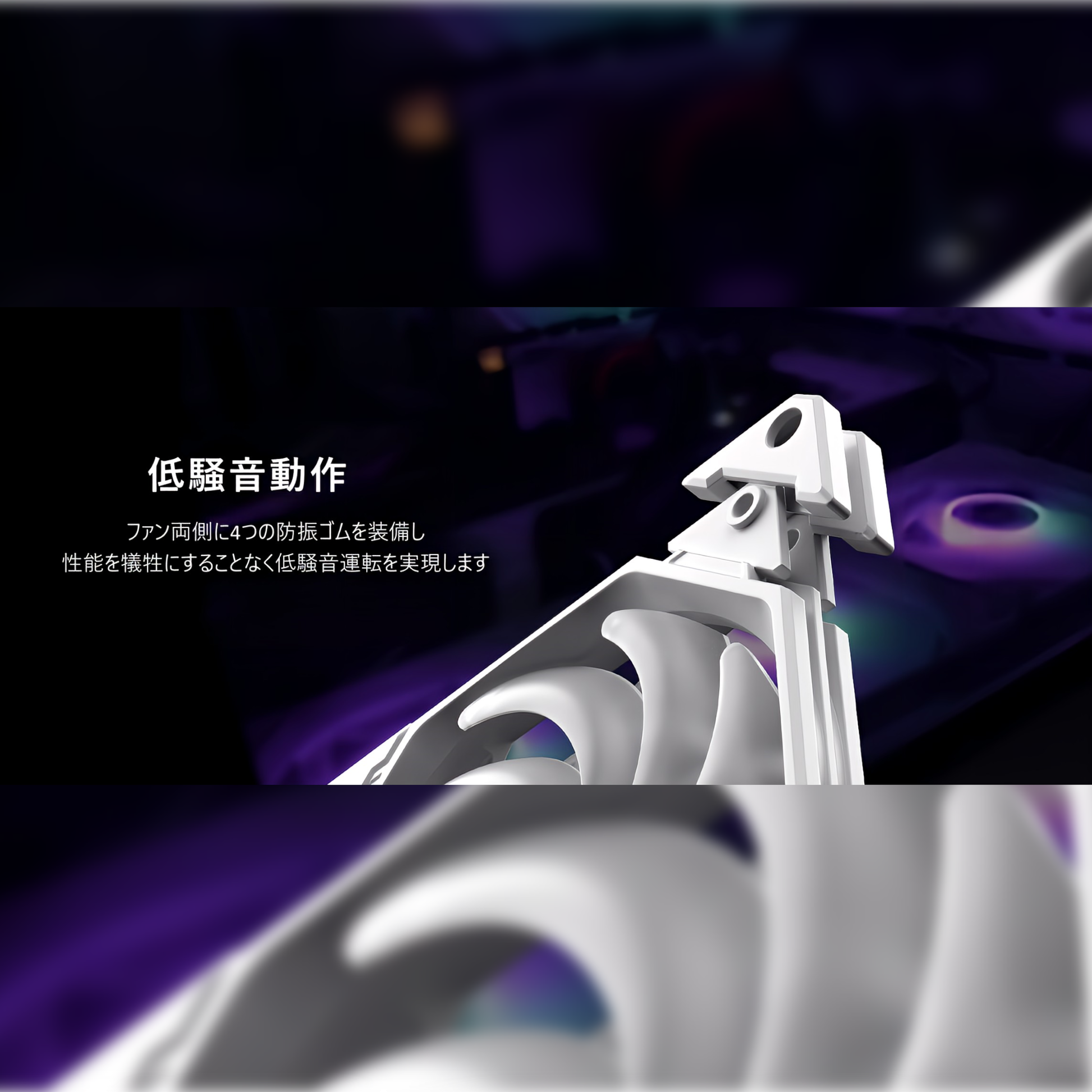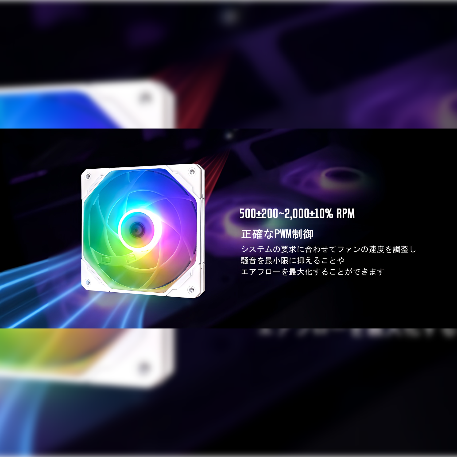 【機能】4pin PWM制御可能です。500-2000RPM(±10%)の回転速度があります。ARGB 5v 3pinで制御が可能です。5v 3pin対応のマザーボードやARGBコントローラーで色の変更ができます。