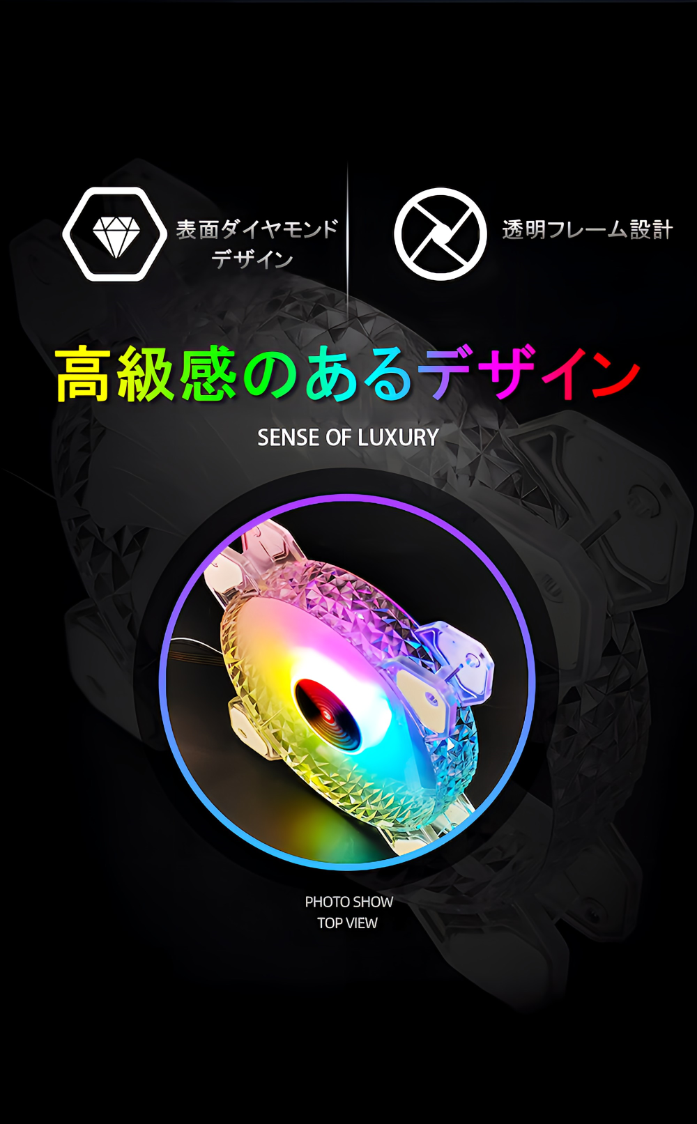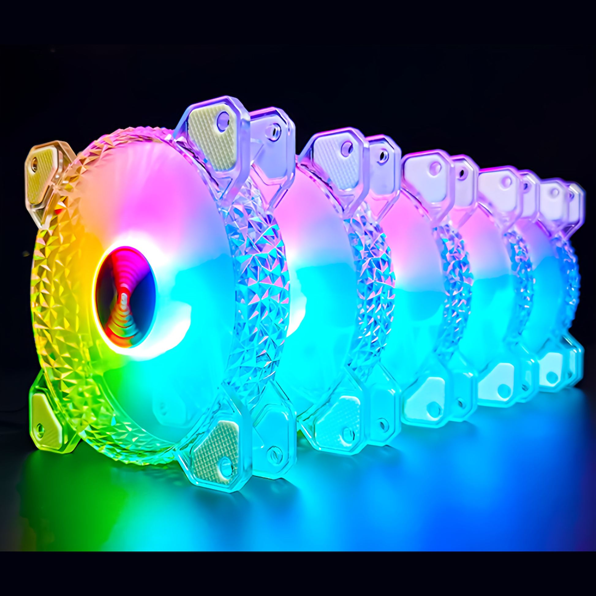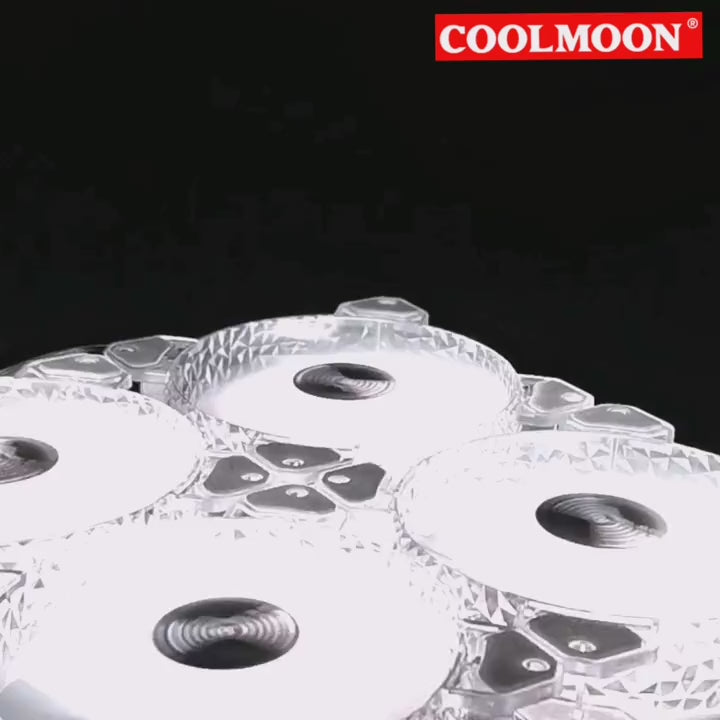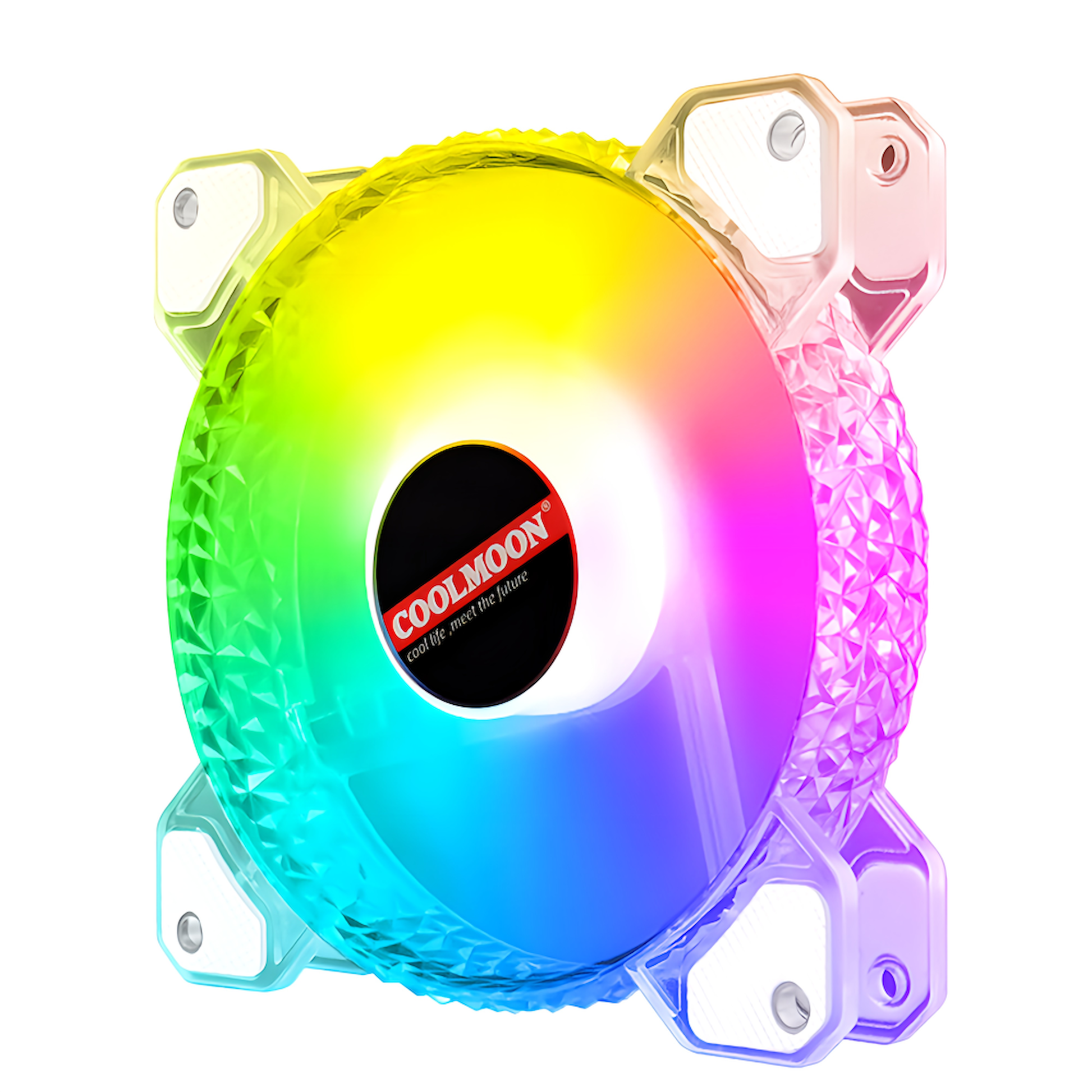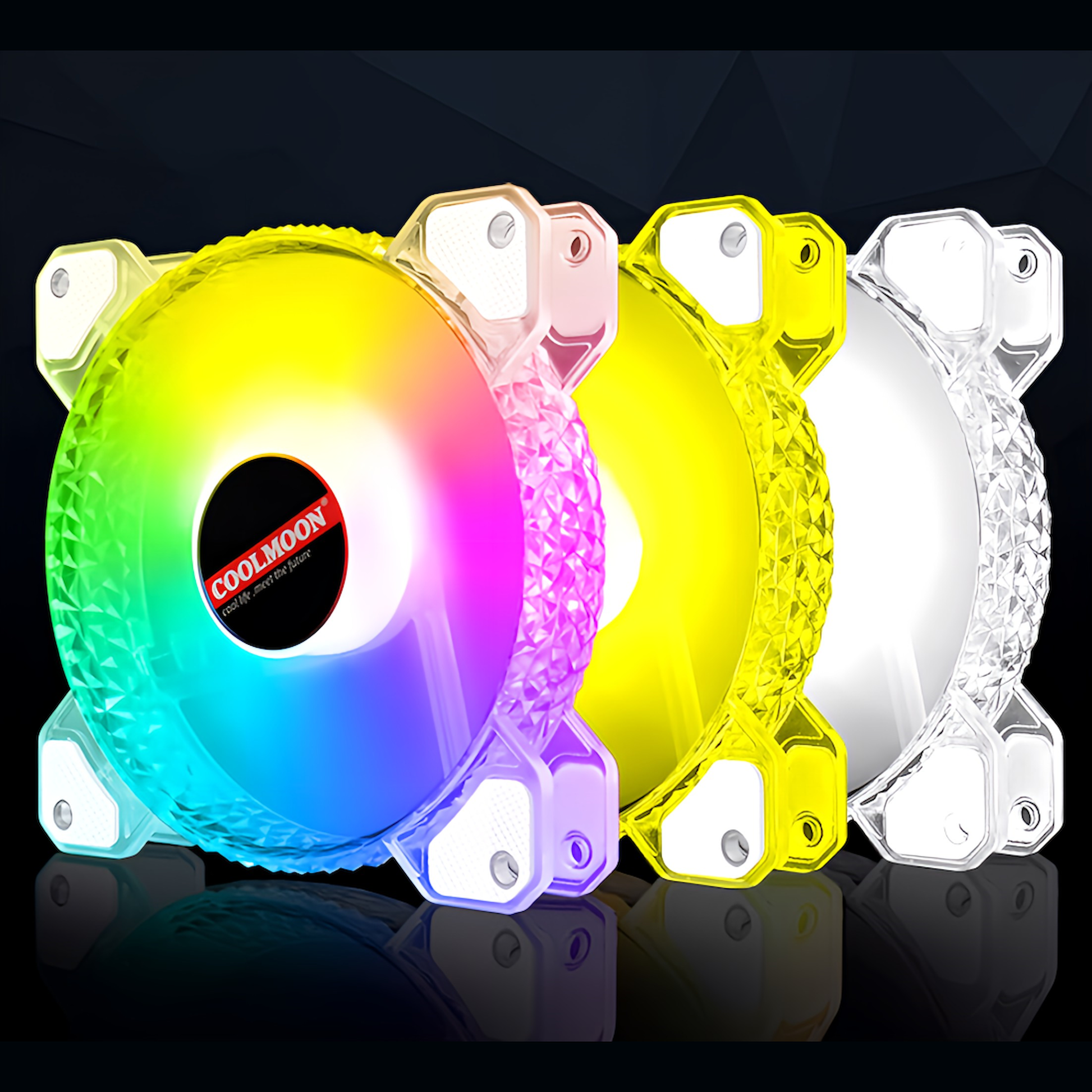 COOLMOON クリスタル PCケースファン5枚セット 120mm LED ARGB 6pin ファンハブ コントローラー付き リモコン 色変更可能 ファン回転速度変更可能