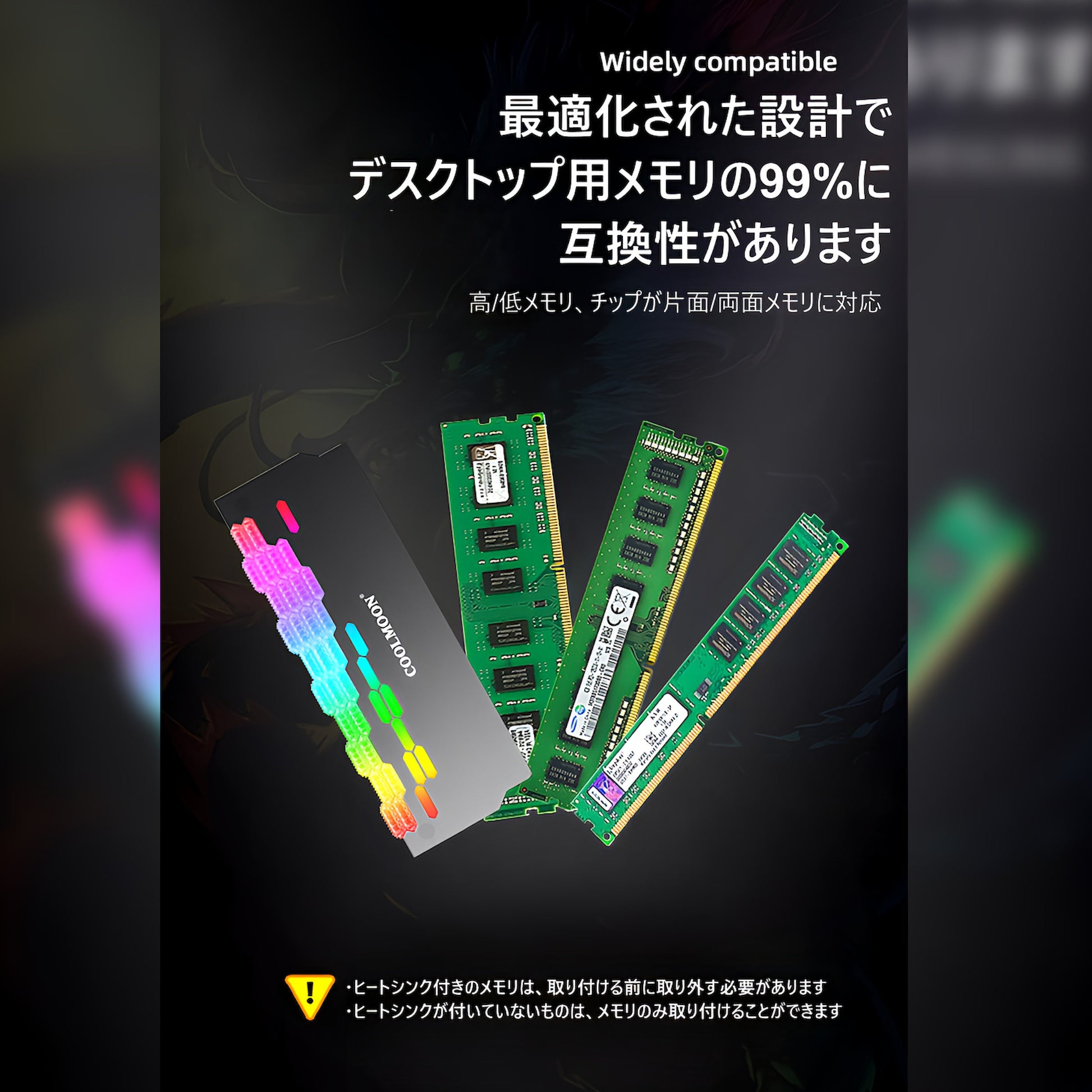 【互換性】DDR3、DDR4、DDR5のメモリに対応。MSI、Asrock、ASUS、Gigabyte様々なマザーボードのARGB 5v 3pinに対応※12v 4pinには対応していないため注意が必要です。