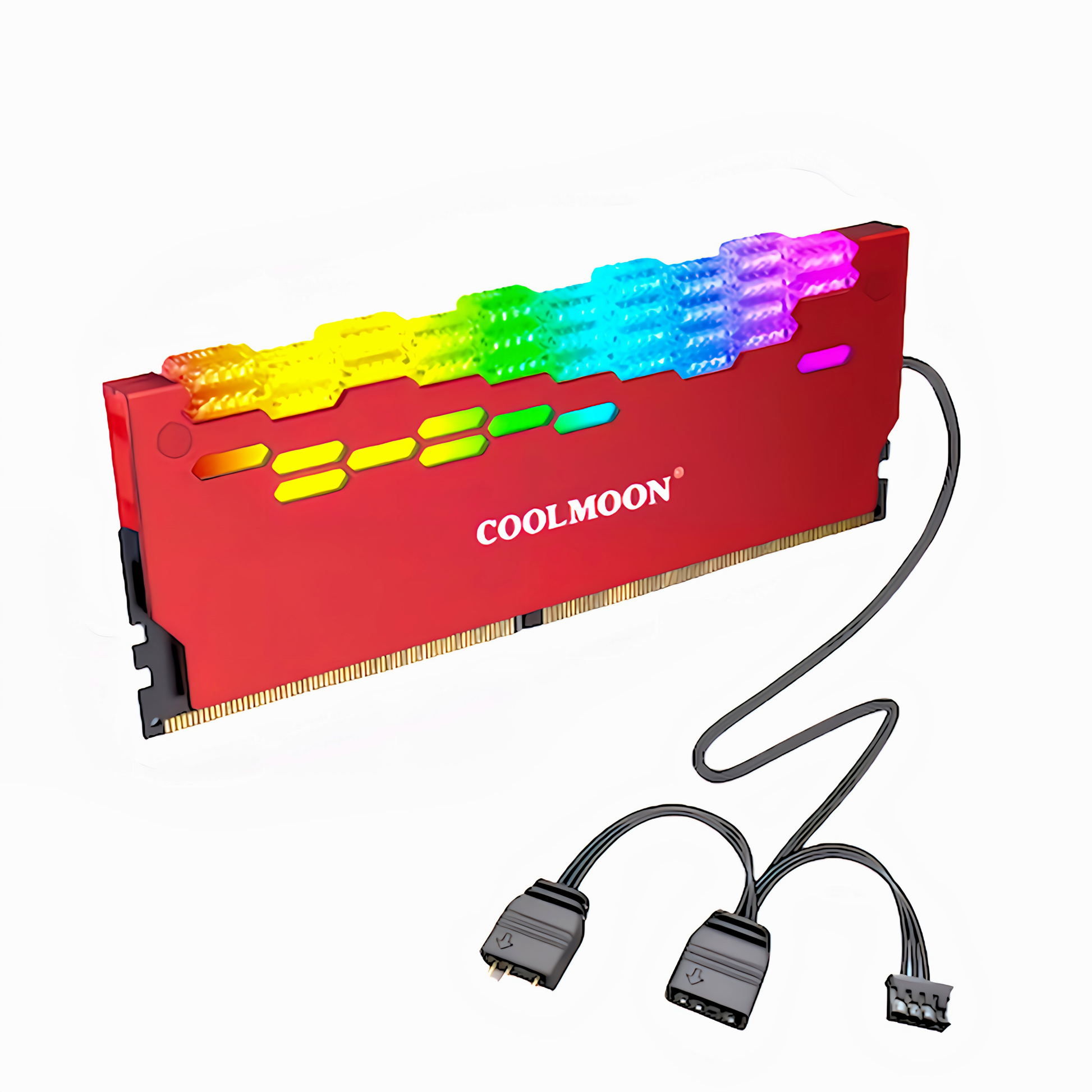 COOLMOON メモリ ヒートシンク LED ARGB 5v 3pin RAM 冷却 ダイヤモンドカット 2個入りセット (レッド)