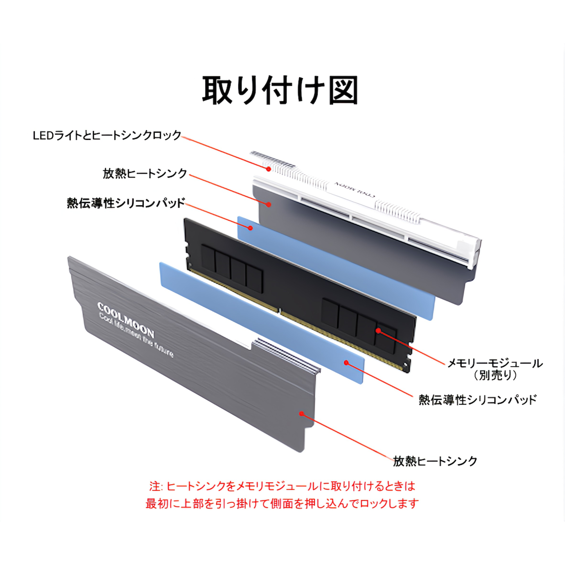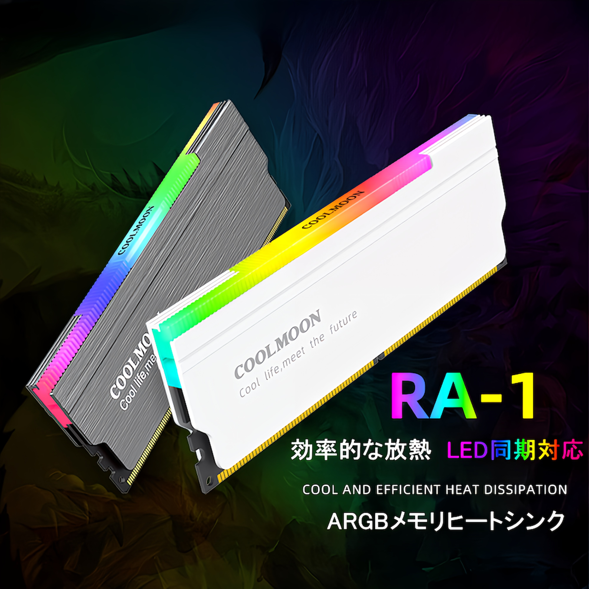 COOLMOON RA-1 メモリ ヒートシンク LED ARGB 5v 3pin RAM 冷却 2個入りセット(ホワイト)