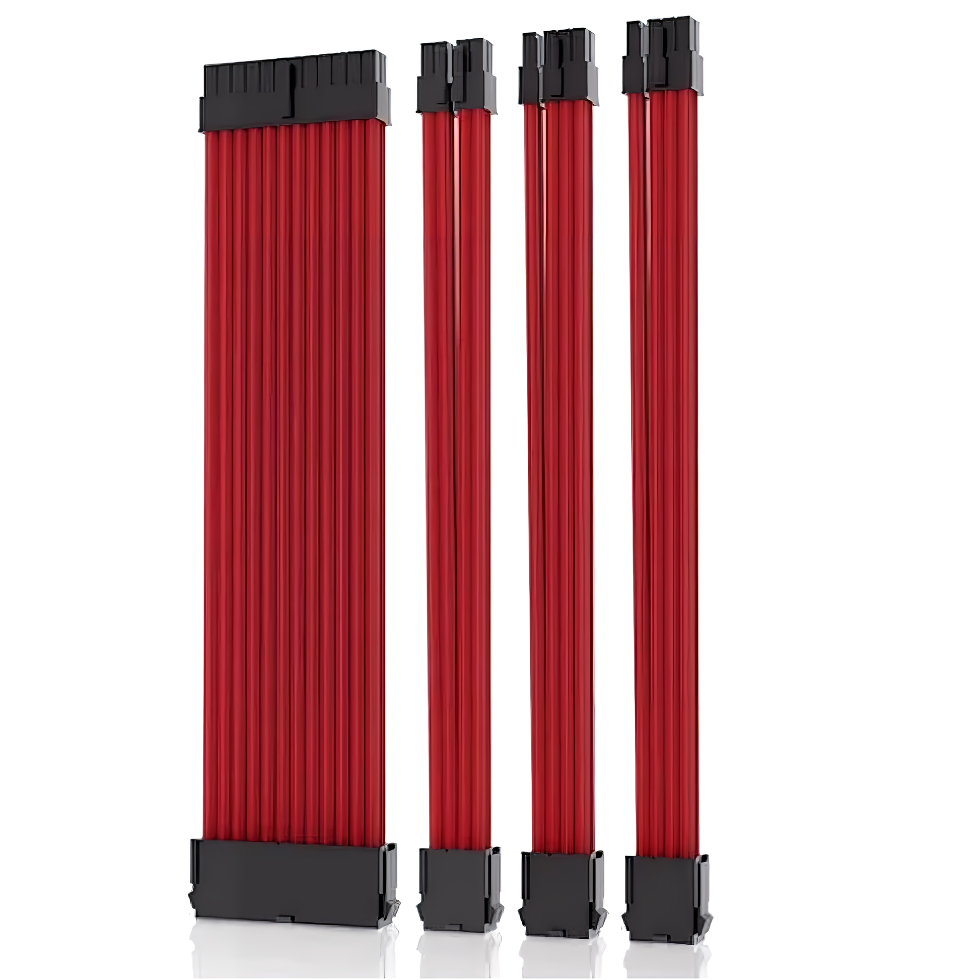 スリーブケーブル 延長ケーブル 30cm 24pin 8pin(6+2pin×2、4+4pin×1) マザーボード グラフィックボード 電源ユニット ケーブルコーム付き (レッド)