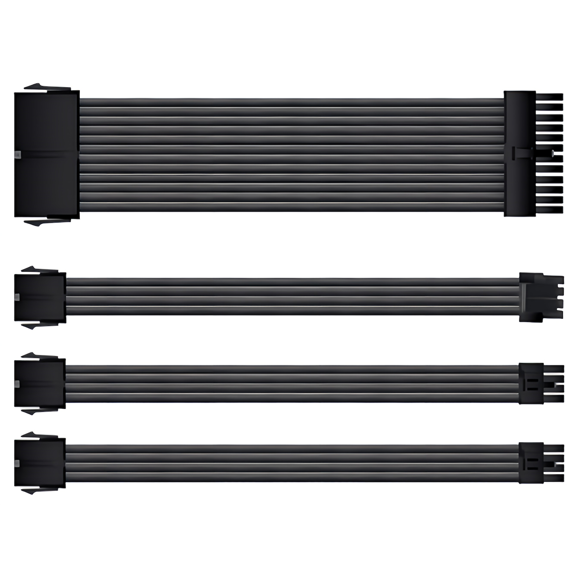 スリーブケーブル 延長ケーブル 30cm 24pin 8pin(6+2pin×2、4+4pin×1) マザーボード グラフィックボード 電源ユニット ケーブルコーム付き (ブラック)