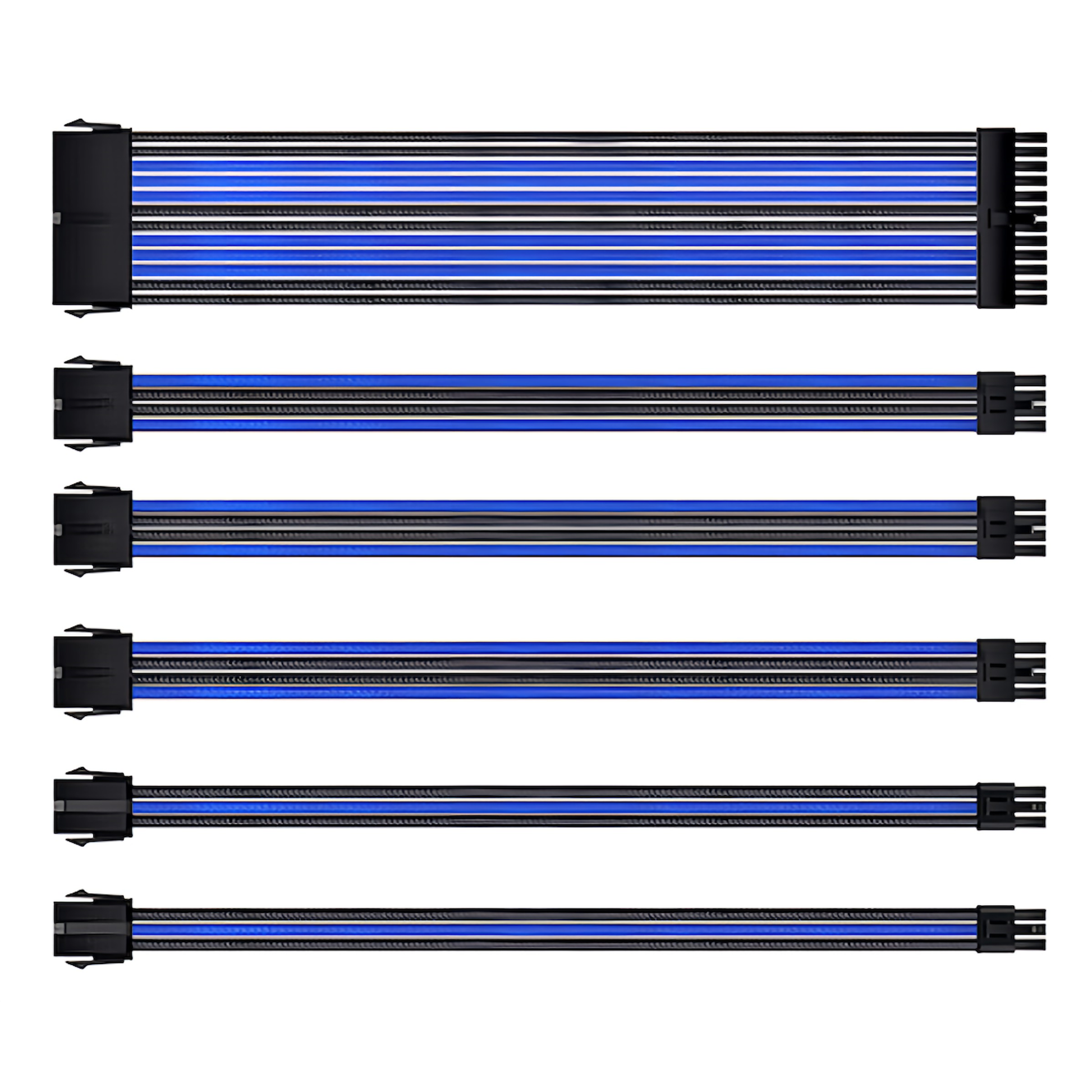2色スリーブケーブル 延長ケーブル 30cm 24pin 8pin(6+2pin×2、4+4pin×1) 6pin×2 マザーボード グラフィックボード 電源ユニット ケーブルコーム付き(ブラック/ブルー)