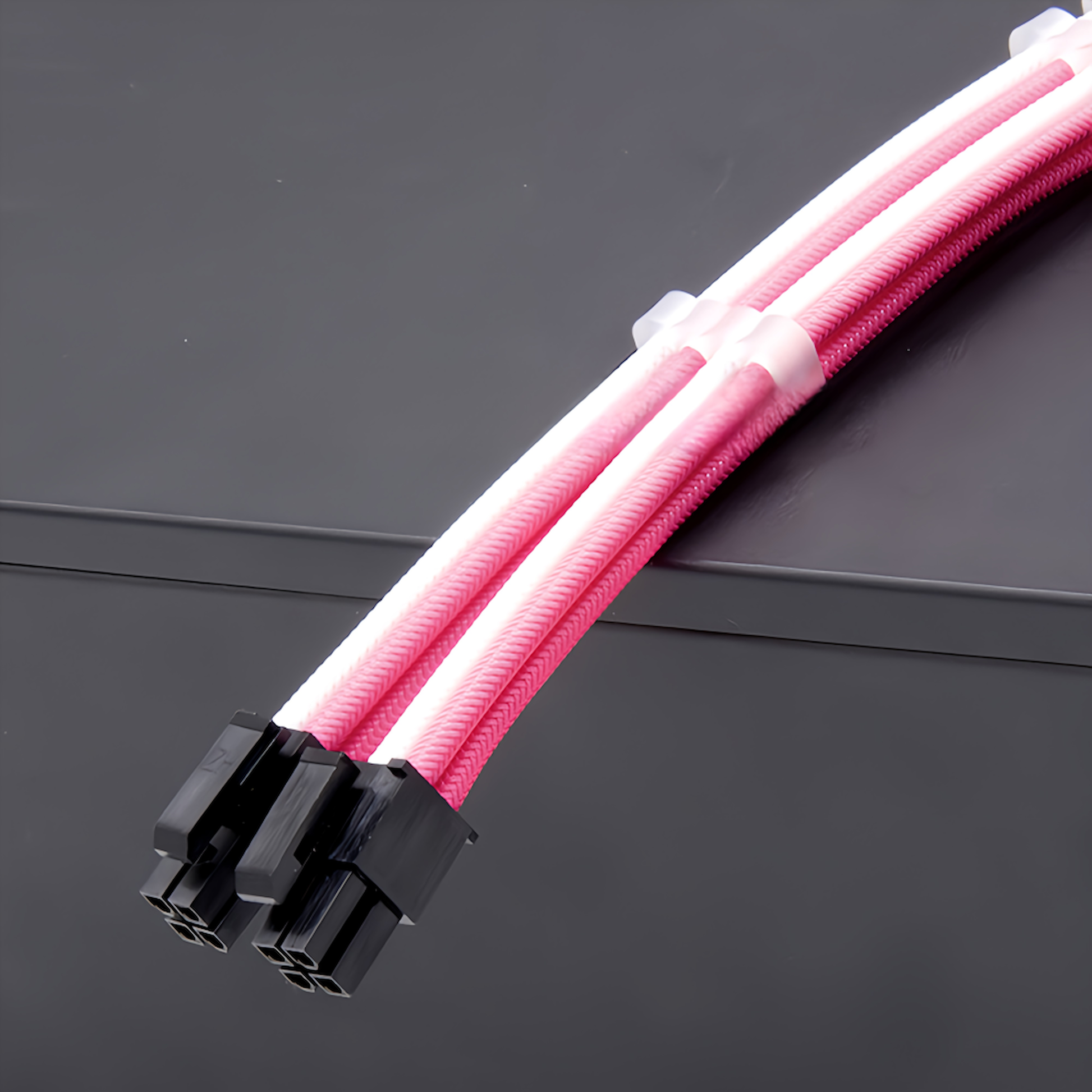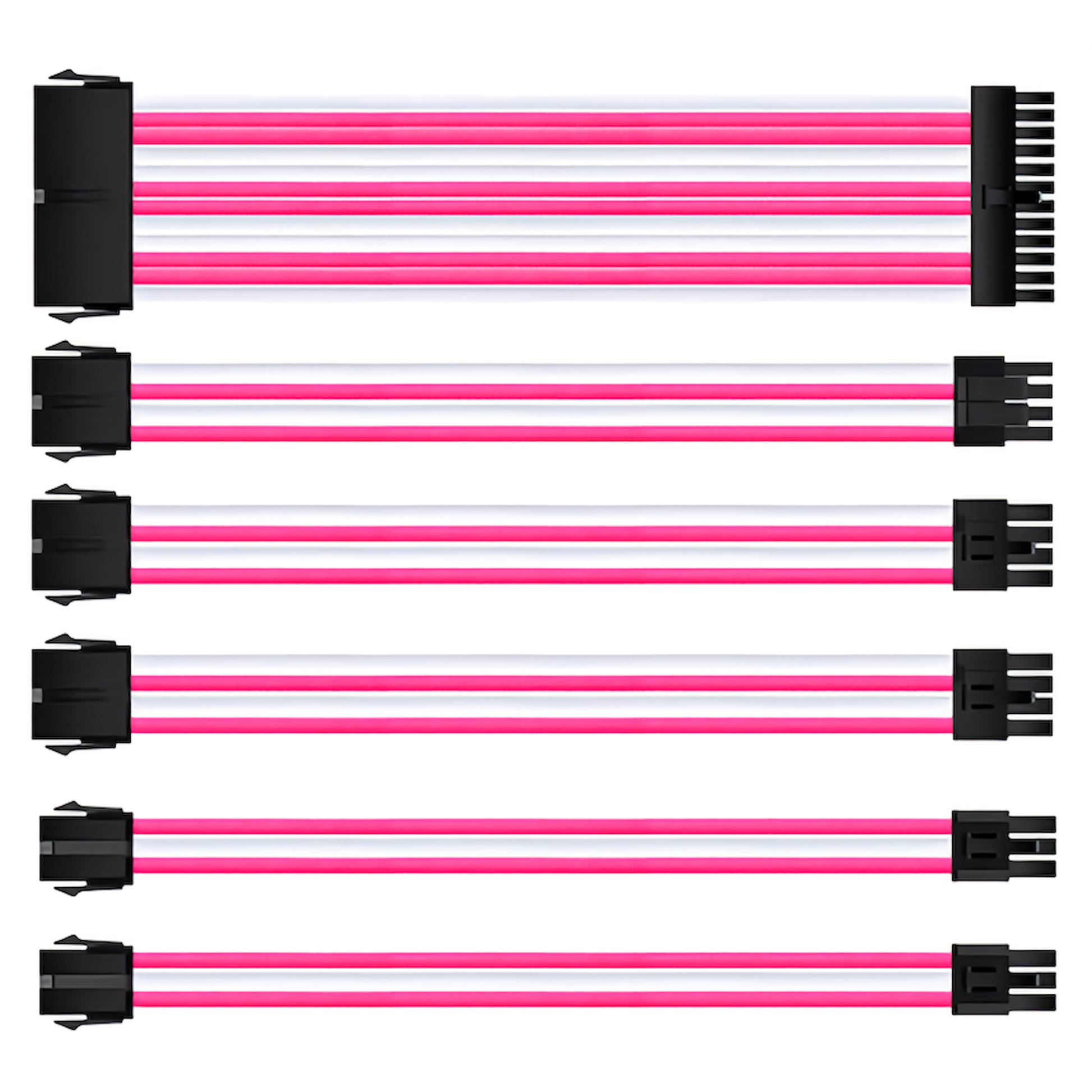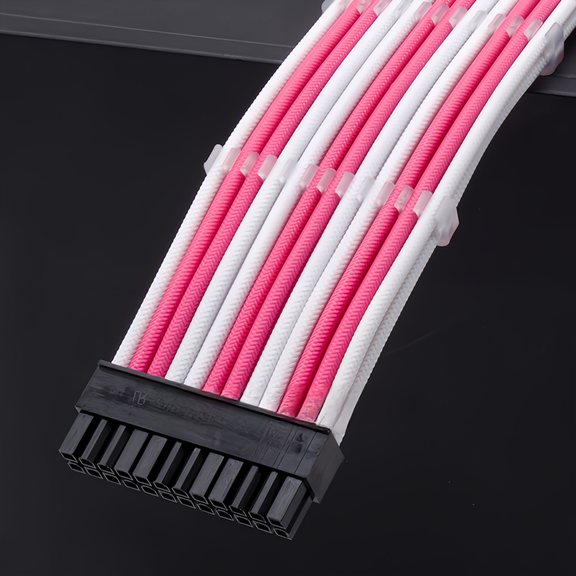 2色スリーブケーブル 延長ケーブル 30cm 24pin 8pin(6+2pin×2、4+4pin×1) 6pin×2 マザーボード グラフィックボード 電源ユニット ケーブルコーム付き (ピンク/ホワイト)