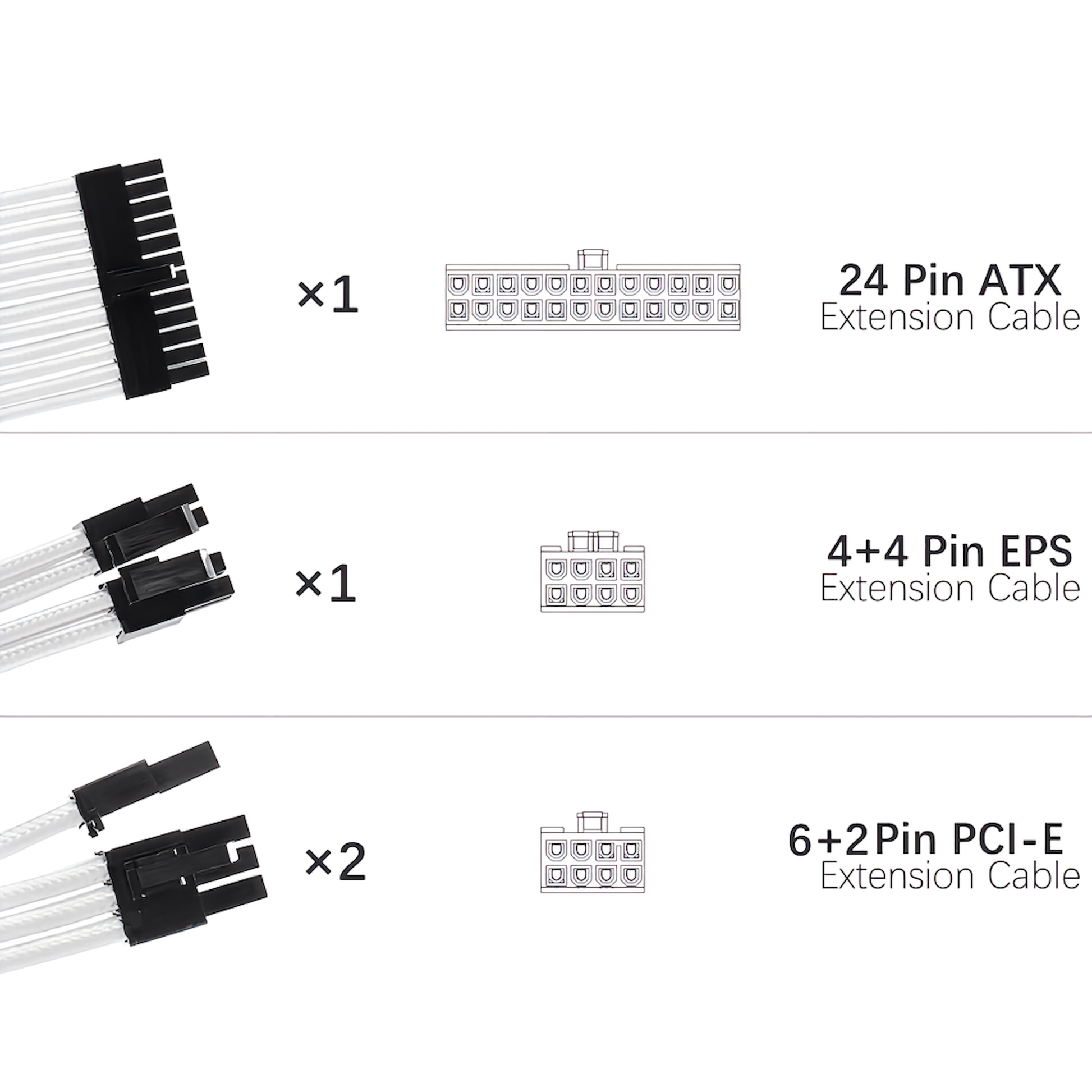 2色スリーブケーブル 延長ケーブル 30cm 24pin 8pin(6+2pin×2、4+4pin×1) 6pin×2 マザーボード グラフィックボード 電源ユニット ケーブルコーム付き (ブラック/レッド)